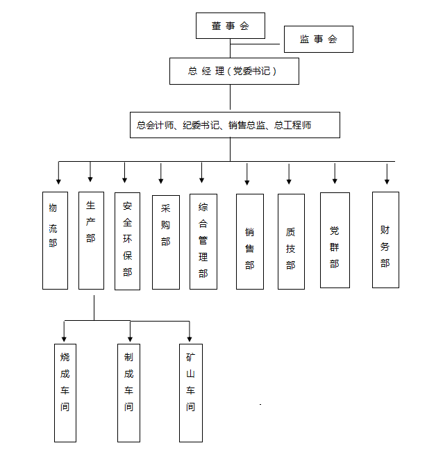三門峽騰躍同力水泥有限公司位于河南省澠池縣境內(nèi),地處晉、陜、豫三省交匯處,緊靠連霍高速公路、310國道,交通便利。公司總面積274175.46m2,公司類型為一人有限責(zé)任公司。公司實(shí)行董事會領(lǐng)導(dǎo)下的總經(jīng)理負(fù)責(zé)制,下設(shè)綜合管理部、生產(chǎn)部、財(cái)務(wù)部、采購部、市場部、銷售部、物流部、質(zhì)量技術(shù)部、安全環(huán)保部、黨群部。生產(chǎn)部下設(shè)燒成車間、制成車間、礦山車間。